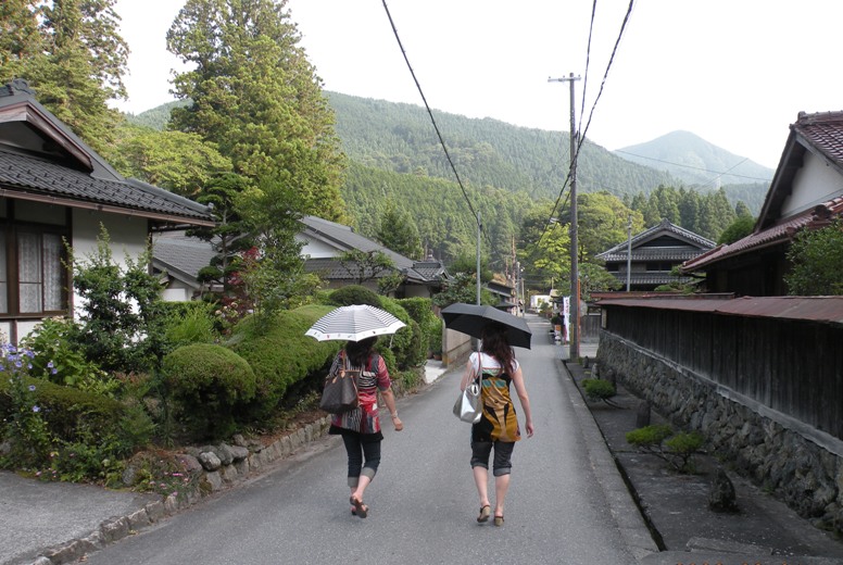のどかな町並みをてくてく歩く。向かって右側が私。左がさちこさんです。