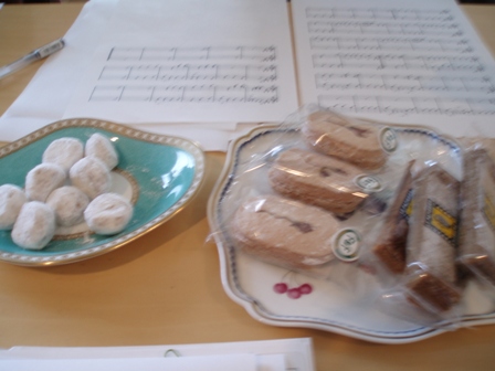 お天気もよく桜も咲き始めていたこの日、Ikukoさんが「桜のお団子」と「桜のダックワース」をお土産に持参下さって、またまたお茶しながらの楽しいリハーサル♪