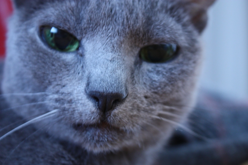 というわけで、こちらは、ノエル姫のアップ。むむ、今日もしっかと緑のまなこで、しもじもの民(飼い主ともいう)その他を見ておられるようで。