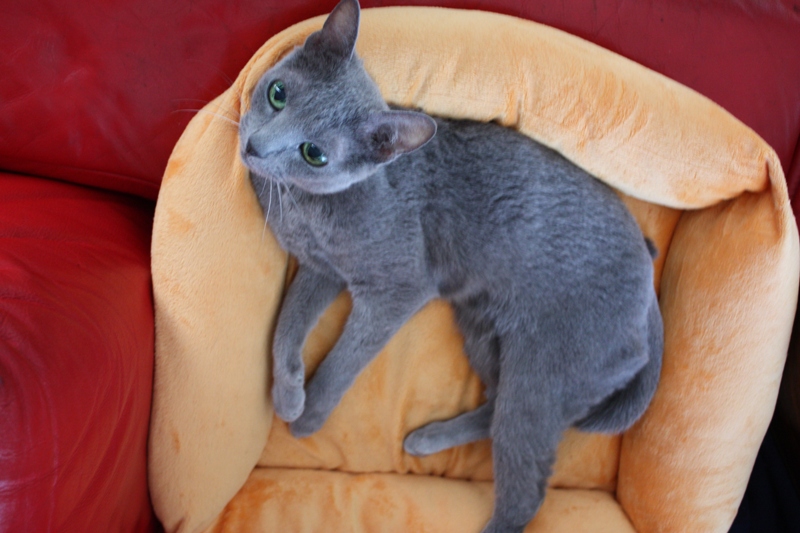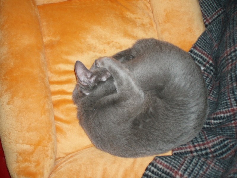 ノエルは、今もお気に入りの玉座^_^;にいます。かゆがっていたので巻いていた首のハンカチもとれ、すがすがしそう。