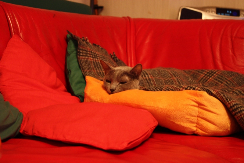 いつも私のベッドにもぐりこんでくるのに、ここのところ、この玉座で寝ているので、なんだかちょっとさみしい。
