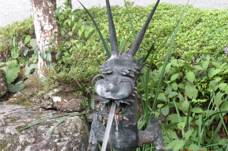 こちらの写真は、なんだか笑っているように見える、龍のお手水。