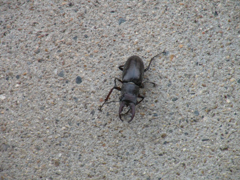 民宿の庭を歩いていたクワガタ。都会じゃ見かけないものね~。
