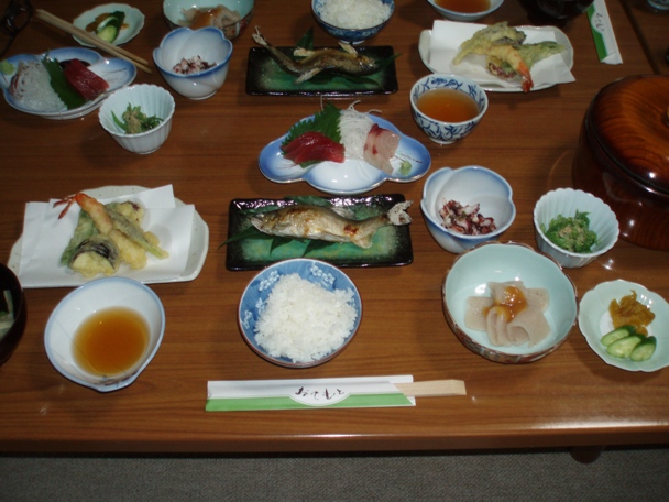 白いご飯がなぜかとびきり美味しい、民宿「名迫」の夕食。おかずも美味しかった。