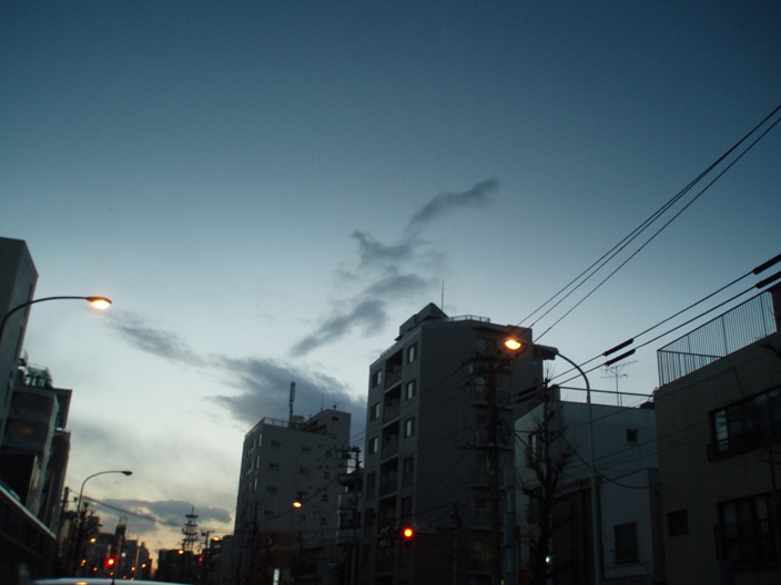 途中で見た夕空の右上に、まるで火の鳥のような、鳳凰のような雲が!