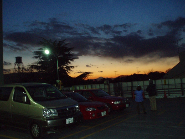 この写真でははっきりわからないのですが(またもカメラマンの腕がいまいちなもので・・・汗)、とても美しかったので、やはり写真を撮っている人がいました。富士山、この写真では小さくしか見えないけど・・・いちばん向こう側の赤いクルマの上にちょこっと見えています。