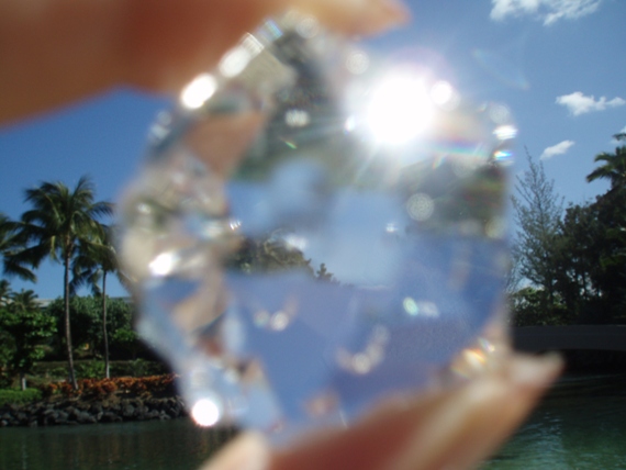 朝食後は海へ。広大なホテルの中にあるビーチですが、その打ち寄せる海水で、いつもたったひとつだけ持っている、クリスタルを洗いました。太陽にかざすとこんなにキラキラ。