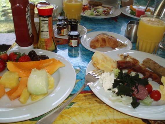 私はふだんあまりたくさん朝食を食べません。せいぜい野菜ジュースとか、冬なら野菜スープくらい。でもハワイ島では違いました。こーんなに食べちゃいました!