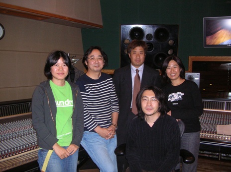 写真は、ボーカル録音後のスタッフみなさま。(といっても、たくさんの方々が帰られたあとなのですが・・・)