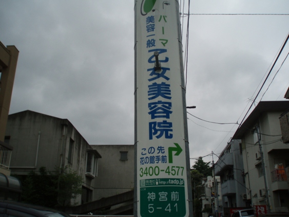 青山の裏通りを歩いていましたら、こういう看板を見つけましたの。