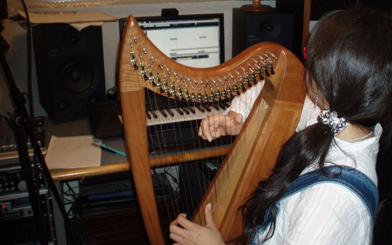 今日はTHE SELIOSのヒーリング系CD第三弾「アスミアーロ」(~Sacred Love(Oneness)~)に収録する楽曲に入れるアイリッシュハープ、フラメンコカスタネット、そしてナレーションの録音でした。
