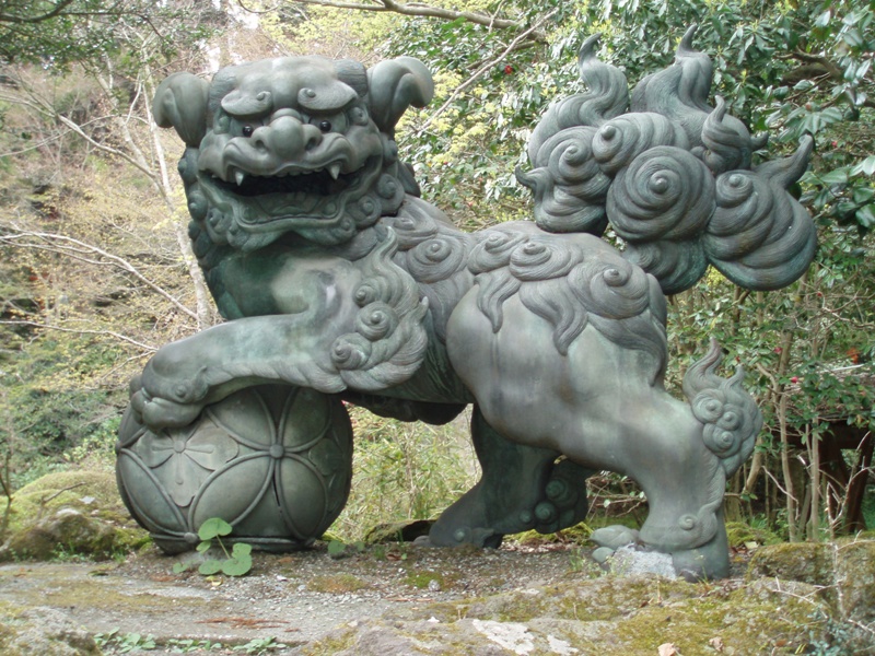 顔は鋭いけど、スタイルの可愛い狛犬さん。